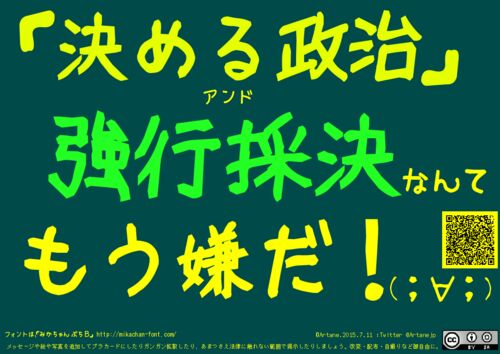 d:id:artane:20150711 で出した「『決める政治』なんてもう嫌だ!(;∀;)」カード、原版だけ出したのでは使いにくいかなと思ったので、ネットプリントや加工用に変換したのも作りました。メッセージやイラストを書き加えたり、加工したり、色を変えたりして…